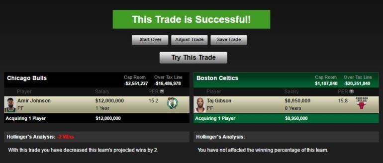 The market for Taj (given the trades of Serge Ibaka and DeMarcus Cousins) probably won’t yield the lottery pick the Bulls want, but he can possibly fetch a lower first round pick or second round picks. At least two contending teams could use Gibson’s services for the playoff push: Boston and Houston.