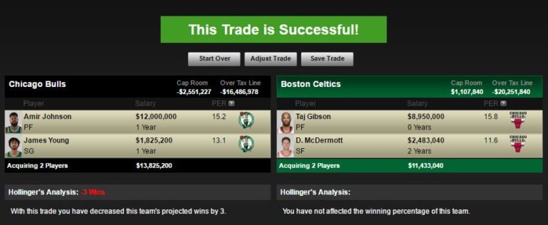 Granted, the Celtics haven’t knowingly expressed any interest in Gibson or McDermott. They are looking for a big man, and Gibson fits their immediate needs and flexible future plans. Convincing them to take Doug might be more difficult, which is why a player-for-player&pick trade involving Gibson seems more likely.