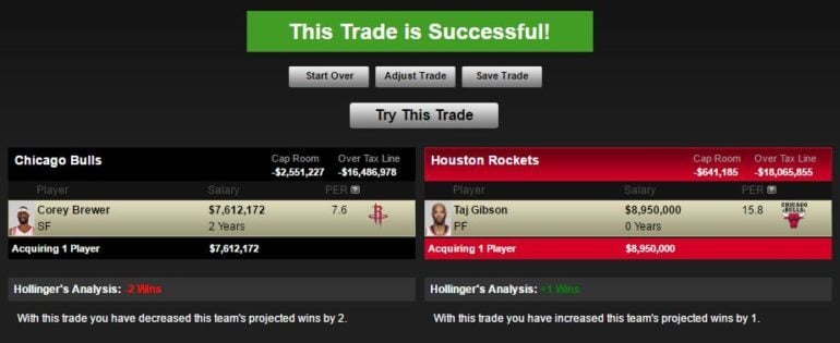 Veteran winger Corey Brewer is in serious decline and he’s not giving the Rockets much in his 16 minutes per game this season. He has another year left on his current contract for $7.5 million. The Bulls could waive Brewer and hope he gets plucked by somebody, or negotiate a buyout. Just like the Celtics trade, this would allow Hoiberg and GarPax to take a closer look at Portis while adding to their draft stock.