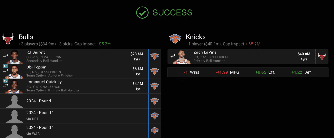 The Bulls have very few draft picks over the next few seasons, thanks to Arturas Karnisova’s overaggressive moves to build a subpar roster. The natural fit seems to be with the New York Knicks as they try to build a roster around Jalen Brunson and Julius Randle. It’s been tough for New York to build a winning roster over the past 20 years. They finally have a healthy mix of young players, star players, and draft assets to put together a team that could make a serious run in the NBA playoffs.