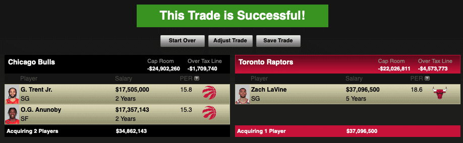 Neither OG Anunoby nor Gary Trent Jr. has had an All-Star season in their NBA career. However, both are highly talented players built for a win-nows team and fit perfectly alongside DeMar DeRozan. The Toronto Raptors have struggled tremendously this season but have a lot of talent on their roster, similar to the Bulls’ situation. Their biggest weakness is having a scoring threat who can create their bucket, which is precisely what Zach LaVine does. For the Bulls, both Anunoby and Trent Jr. are averaging above 18 points per game this season and shooting above 35% from behind the arc. They could fill out the roster with their tough defense but also make up for LaVine’s three-point shooting and points per game. The Raptors will have two stars in Pascal Siakam and Zach LaVine, and a promising player in Scottie Barnes.