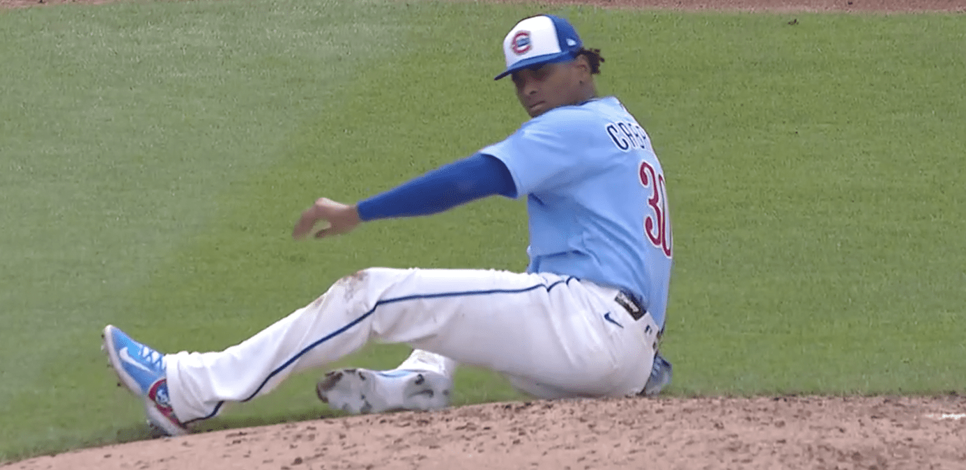On that 2-2 pitch, Cabrera lost his balance and fell to a knee on the left side of the mound. The line drive off Benge’s bat came within inches of what would have been a horrific scene at Wrigley Field, as Cabrera narrowly escaped a disaster.
