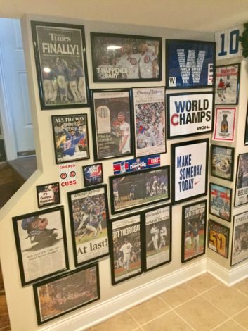 Anything that documented the Cubs win was probably purchased by yours truly. So much so, I had to reorganize my basement to dedicate an entire wall to the historic 2016 Chicago Cubs. (You can’t see it, but there’s confetti from the championship parade inside one of the pictures.)