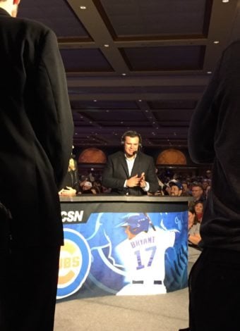 Once Schwarber gave his insight on the 2016 season, the show’s host, David Kaplan, brought on Cubs beat writer Jesse Rogers from ESPN. After trying to get on the stage three or four times, security just decided to stand next to us to make sure we didn’t make a run for it once the cameras flipped on. Both Rogers and Kaplan stopped over to chat quick before they had to go on-air.