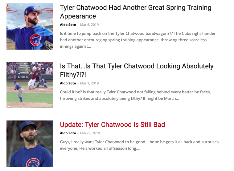 I blame myself. I should’ve known better, but no, after Chatwood’s third spring training appearance, in which he threw three scoreless innings and didn’t walk a batter, I fully believed we were getting a new Tyler Chatwood in 2019.