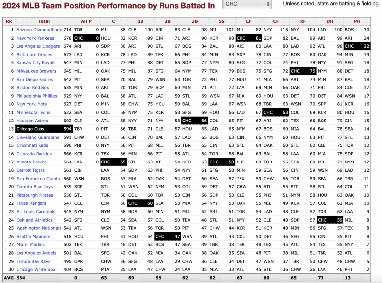 The Cubs have a 3.7 WAR (wins above replacement) from the left-field position in 2024. That is second to the Boston Red Sox and just ahead of the Milwaukee Brewers. The league-average WAR for left field in 2024 is 1.5. Happ (and the other 13%) more than double that number. Happ’s WAR on his own is 3.9, 0.2, which is better than the team’s statistic.
