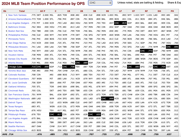 As data and statistics have taken over baseball, there is more emphasis on a player’s ability to get on base and slug than on batting for average. Cubs left fielders have generated an OPS of .815, good enough for third in the league. This season, the average OPS for teams’ left fielders in baseball is .715. Happ’s OPS in 2024 is .810, which ranks second on the team to Seiya Suzuki.