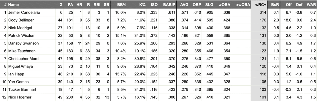 If you look at those 12 players, you’ll notice that Nico Hoerner is barely above league average, but it’s been fine because you still have the rest of the lineup contributing.