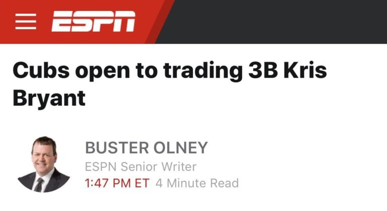 I like gossiping as much as the next guy but I’m not comfortable putting my name on some shit that is completely unfounded. I remember reading article after article from 2017 about all the landing spots for Kyle Schwarber. First he was going to Colorado because of the thin air, then he was going to the Mets for pitching, then he was going to the AL where he could just be a DH. Were teams “interested” in Schwarber at that point? Of course. But why fan the flames of something that holds little to no weight. If that’s the case, please run a report on every time a player gets discussed between GM’s when they’re golfing or in casual conversation. Talking about players doesn’t equate to making moves.