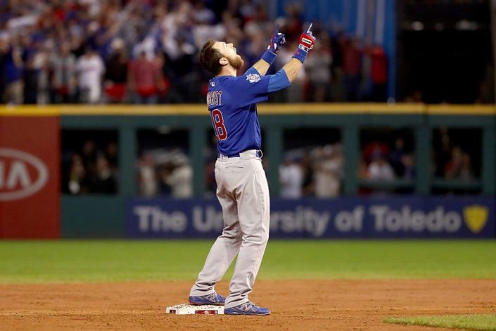 On December 9th, 2015, the Cubs signed utility infielder Ben Zobrist to a 4-year, $56 million dollar deal. Zobrist won the World Series in 2015 with the Kansas City Royals and was about as consistent of a baseball player as you would find. The 13-year vet would be brought into Chicago not only for his rock-solid approach to the game, but he’d also serve as a very important presence in a VERY young Cubs clubhouse. His vet moves were front and center early on when he brought his Royals World Series ring into the Cubs clubhouse to give the team a taste of what they would eventually accomplish later on that season.