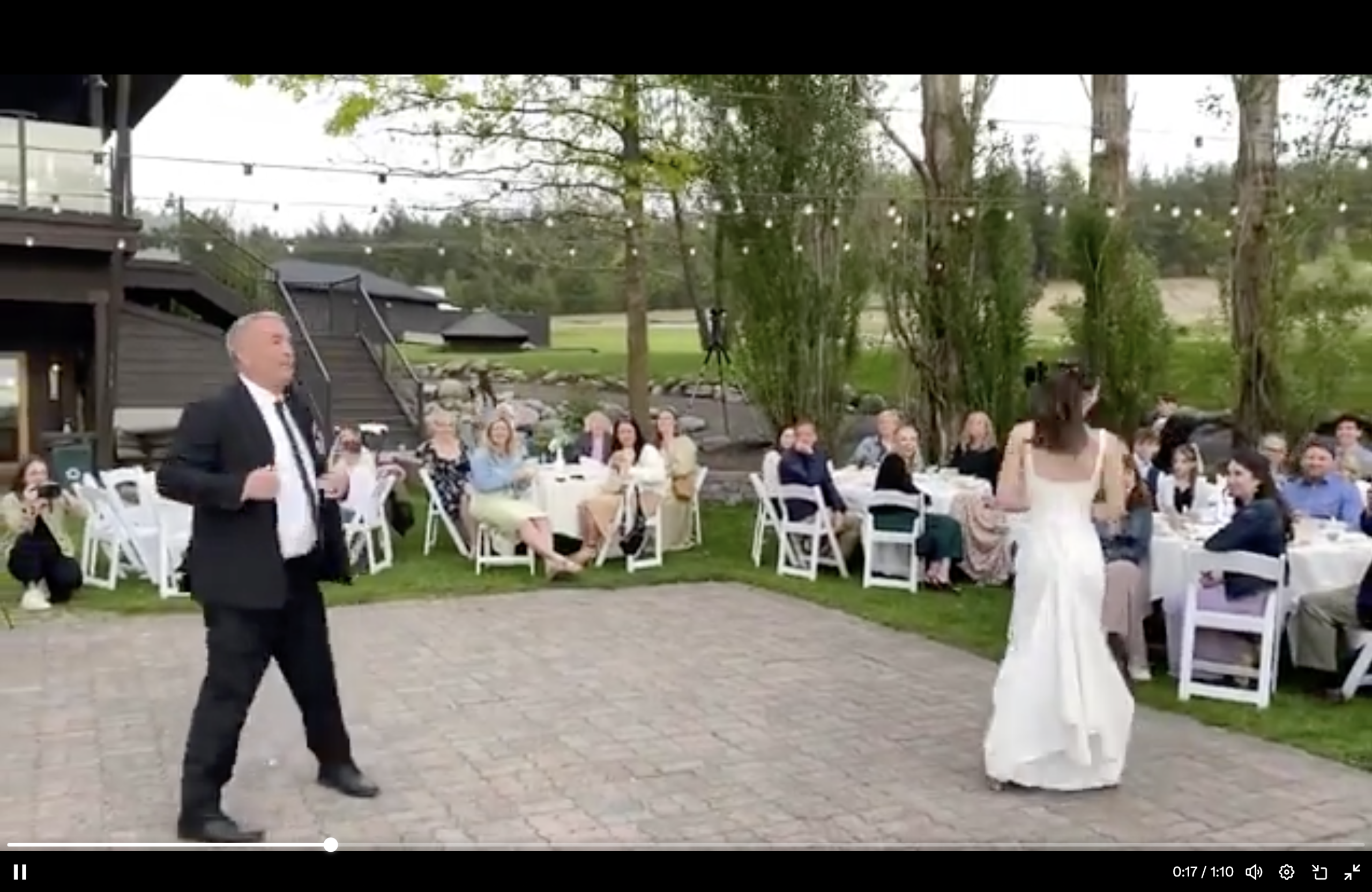 In the above video, an apparent father and daughter are preparing for the father-daughter dance during a wedding. As the song and dancing begin, the father turns around and starts talking to the DJ. He changes the song to “Go, Cubs, Go!”. The two then put on Chicago Cubs jerseys, are given baseball gloves, and play a game of catch.