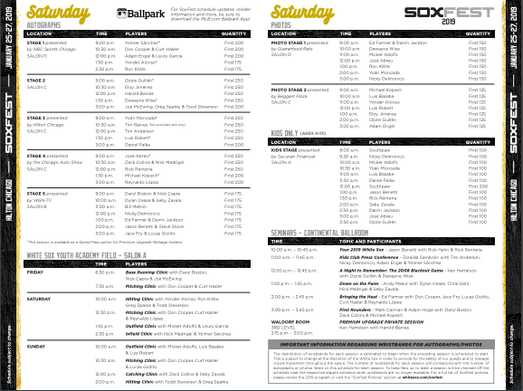 Single and Two-Day Passes: https://t.co/60GZkbrjFX pic.twitter.com/6nosjt5uLf— Chicago White Sox (@whitesox) January 15, 2019