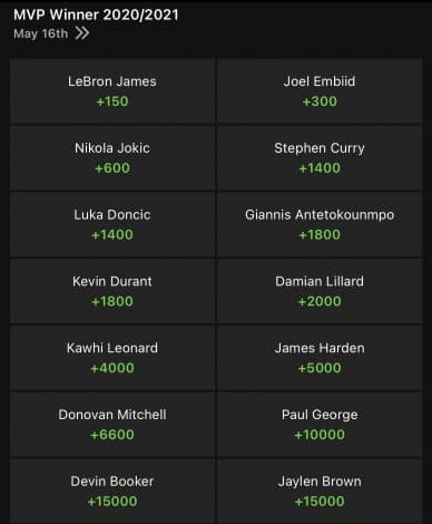 LeBron James is once again leading the pack and is the current favorite to win the 2021 NBA Most Valuable Player Award. LeBron never ceases to amaze us with his abilities and longevity, and it’s incredible that he is still in contention to win the award this late in his career. At +150, he is the clear favorite to win his fifth MVP at DraftKings Sportsbook, which would be his first since 2013.