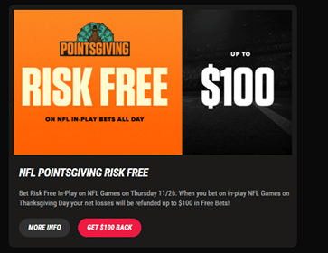 It’s only one bet, no parlays, for in-play NFL games on 11-26