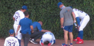 Albert Almora Jr. Leaves Cubs Scrimmage After Crashing Into Wall, Returns,...